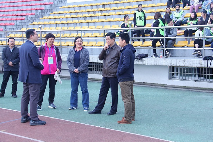 一直以来,我校领导对学生体质健康情况高度重视。4月2日一早,校长宋明顺在体军部党政领导的陪同下来到了抽测现场,与省抽测组专家们进行了详尽的交流与沟通,掌握了抽测的工作安排,询问了学生现场测试情况,肯定了全体工作人员的努力付出,感谢了省抽测工作组对计量大学的支持。
