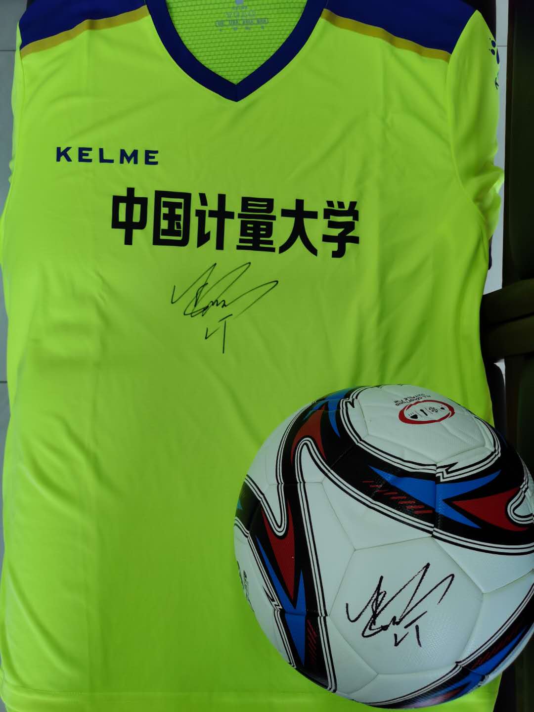 我校获赠国足主教练签名的中国计量大学球衣和足球