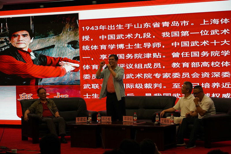 我国武术届泰斗、中国第一位武术与民族传统体育学博士生导师、上海体育学院武术学院邱丕相教授表示,““生活的太极拳,文化的太极拳,科学的太极拳”令我印象深刻,你们坚持创新探索十几年,非常不容易”“你们在比赛时诵读的那四句话“学练太极拳,体悟优秀传统文化,做自信的中国人,过有品质的健康生活”,是你们的创新,也是你们的文化。”“不管是下午的太极拳大会还是晚上的校园太极拳文化论坛,形式都非常好,贴近学生,有的人可能从此受益终生。”“中国计量大学是学校领域开展太极拳的一面旗帜。”