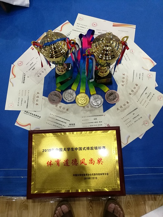 2019年中国大学生中国式摔跤锦标赛于7月3日至7月7日在辽宁省辽阳举行。我校摔跤代表队在杨军、王晓东两位教练员的率领下第四次参加该项赛事。