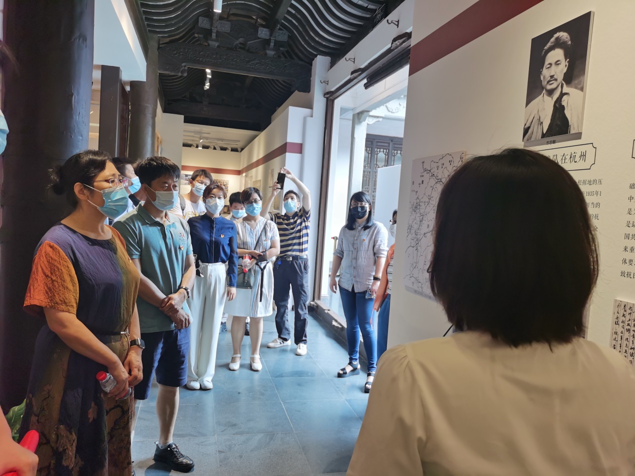 党员们按照历史脉络和时间顺序,参观了历史观的三个展厅,陈列布展主要展示杭州地方党组织领导人民进行革命、建设和改革的三部分历史。馆内征集到杭州党史各个时期各类文物共计2358件,展出实物500余件。着重反映杭州人民在党的领导下,敢为人先,追求卓越,为争取国家独立民族解放立下的功勋以及为探索社会主义道路90余年的艰辛历程。馆舍为民国历史建筑,中西合璧的建筑风格,处处彰显出精致和谐之美,馆舍内部曲径回廊、古木葱茏,还留有吴昌硕等诸多历史文化名人的楹联匾额和吉祥图腾。来到馆内,会发现千年的西湖美景、百年的历史建筑和中共杭州地方党史的独特韵味三者交相辉印、惟妙惟肖。