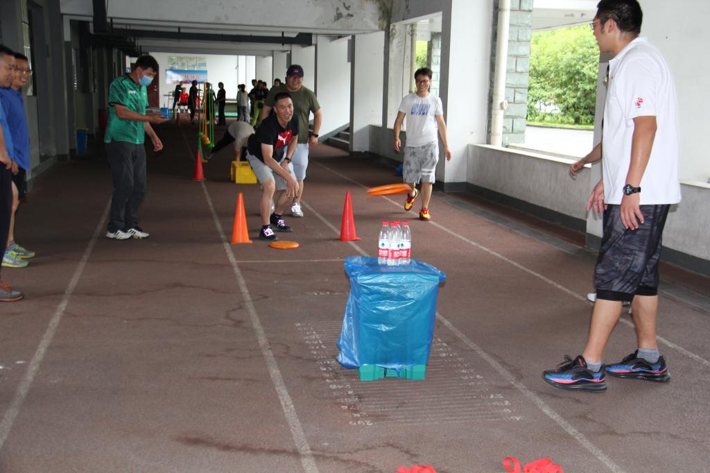 此次活动安排了障碍跳跃、飞盘投掷、头顶飞盘、飞盘保龄球、跳绳梯、九宫型等6个比赛项目,比赛紧张刺激,既锻炼了教师的身体素质,又锻炼了身体平衡和协调能力。此次活动较好地将趣味性和竞技性融合在一起,充分调动了广大会员的参与热情。比赛时只见选手沉着冷静,旁边加油声、欢笑声、掌声此起彼伏,让大家度过了一个欢乐、开心的时光。
