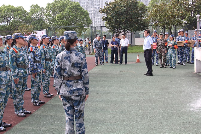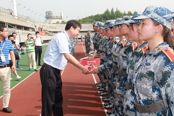 9月13日早上8:30,校长宋明顺与党委副书记程刚一行来到军训现场,慰问参加军训的2019级新生、教官和坚持在工作岗位上的教职员工。