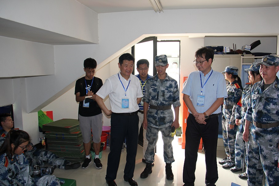 校领导与现场参加军训的辅导员、体军部工作人员和校医院值班教师亲切交谈,并向军训师了解今年军训中遇到的困难、目前训练进度、紧急预案安排等军训相关工作情况,对同学们在参训过程中表现出的积极态度和高涨热情、军训工作部门在各项环节中体现出的周密工作部署做了肯定的评价。希望军训师在军训时要以科学合理为原则,灵活地使用训练方法,既要确保训练安全,又要保障训练进度,帮助新生养成良好的生活、学习、工作习惯和组织纪律观念,培养其坚毅果敢的作风与特质,组织学生上好大学第一课。同时也希望军训教职工要继续保持责任感和使命感,实时掌握学生思想动态与身体状况,及时发现并处理和汇报问题,履行好作为沟通新生、教官间桥梁的职责,保障军训工作安全、圆满完成。