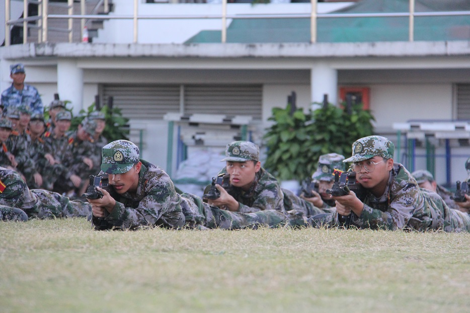 烈日之下,体军部老师和军训教官们组织学生进行了一场匍匐前进的演练,学子们能以良好的军容风貌、严明的纪律要求,高质量完成训练任务,充分展现当代大学生的靓丽风采。